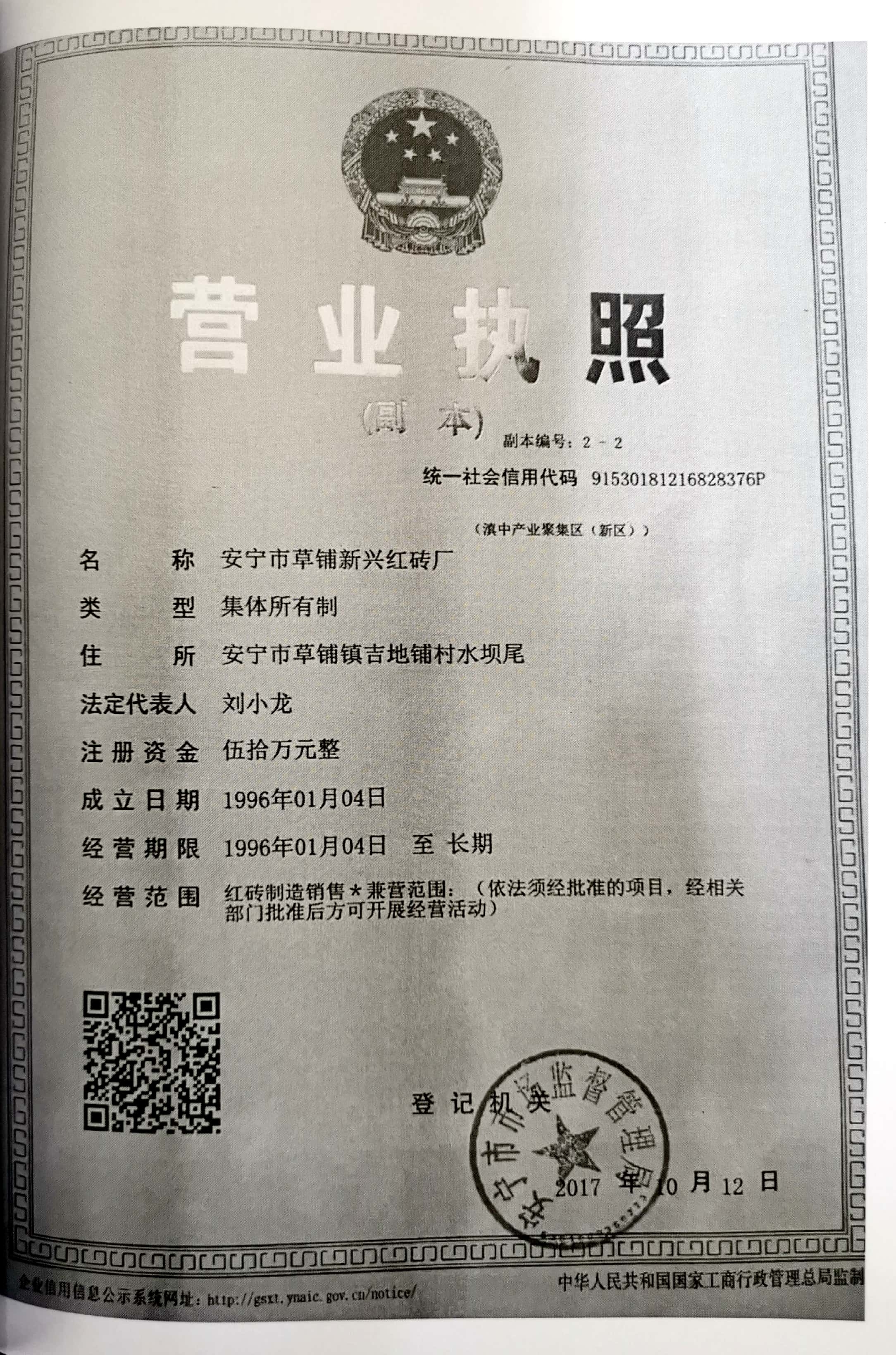 建設單位:安寧市草鋪新興紅磚廠;