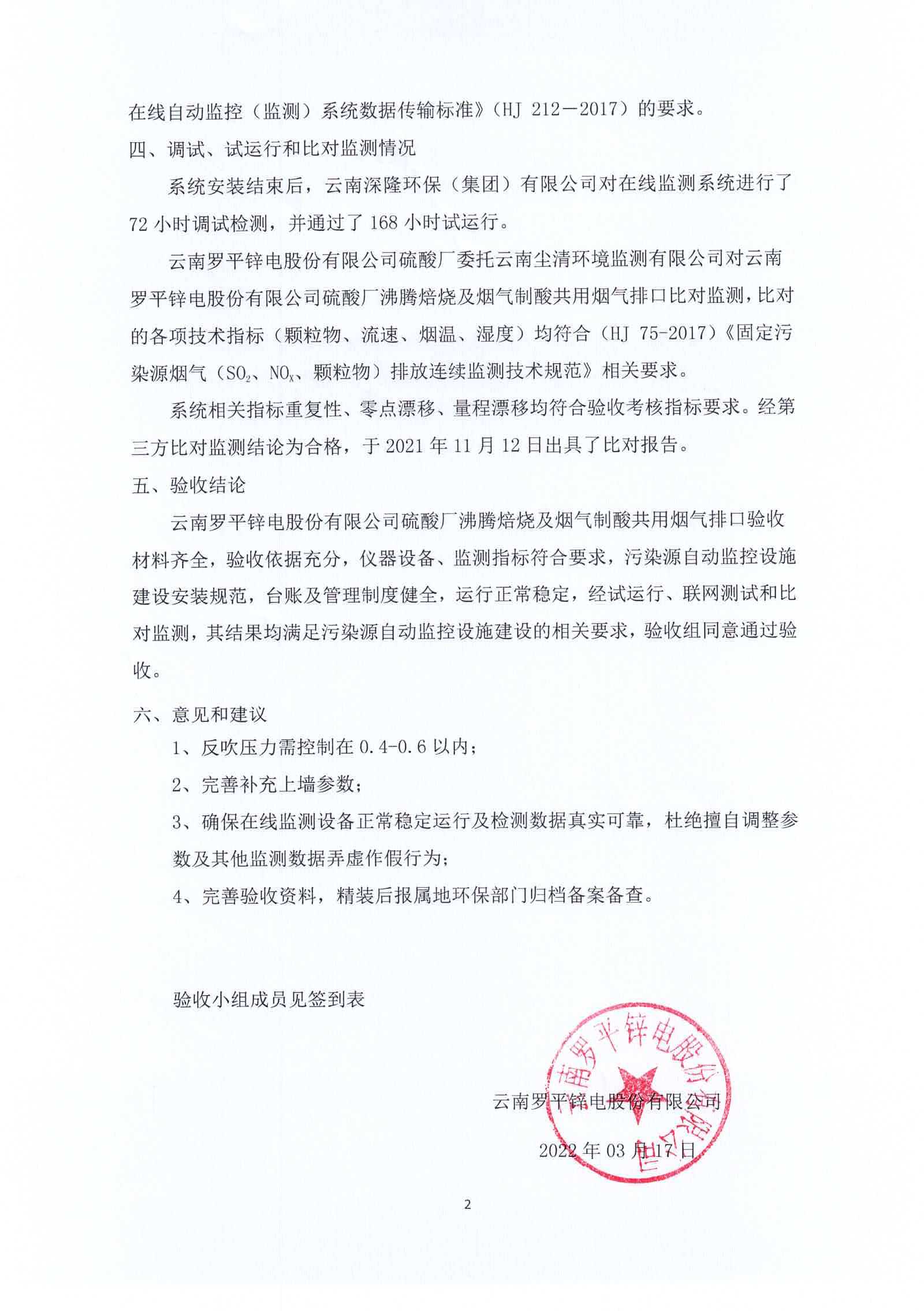 云南羅平鋅電li硫酸分廠沸騰爐廢氣排放口自動監(jiān)控系統(tǒng)驗收報告定稿.pdf