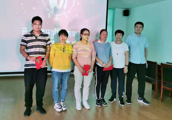 2019年8月24日,公司在塵清環(huán)境監(jiān)測(cè)有限公司現(xiàn)場(chǎng)舉行頒獎(jiǎng)會(huì),對(duì)在“第二屆全國(guó)生態(tài)環(huán)境監(jiān)測(cè)專業(yè)技術(shù)人員大比武活動(dòng)”云南省大比武選拔賽中,代表塵清公司參賽并獲得個(gè)人第18名的楊慧勤及參加團(tuán)隊(duì)比賽的劉明靈、付艷芳、樊志龍等三名隊(duì)員,進(jìn)行頒獎(jiǎng)鼓勵(lì)。