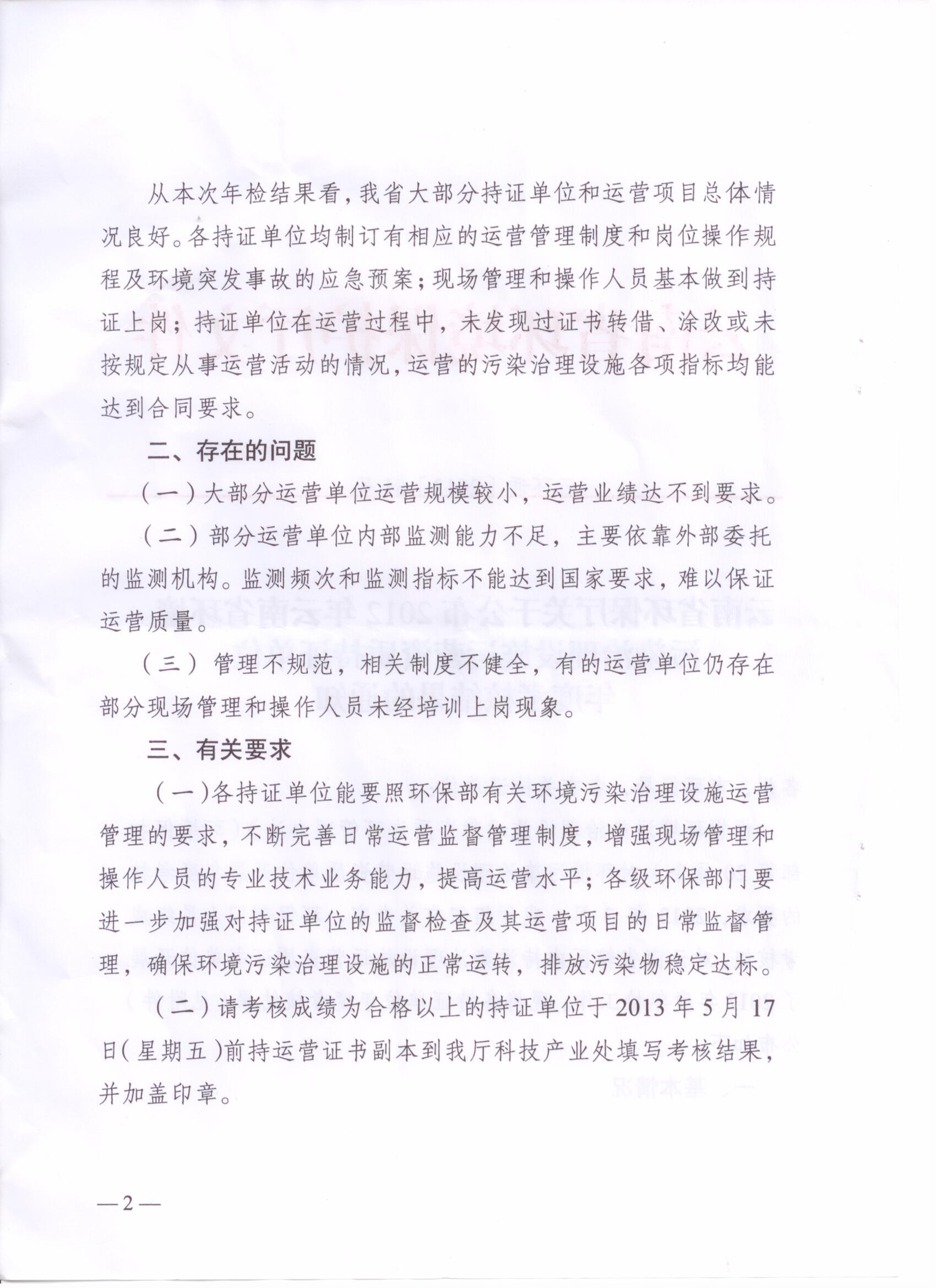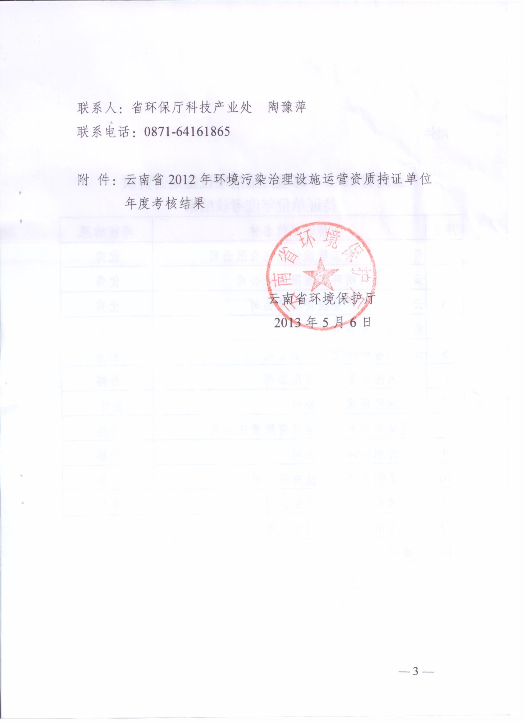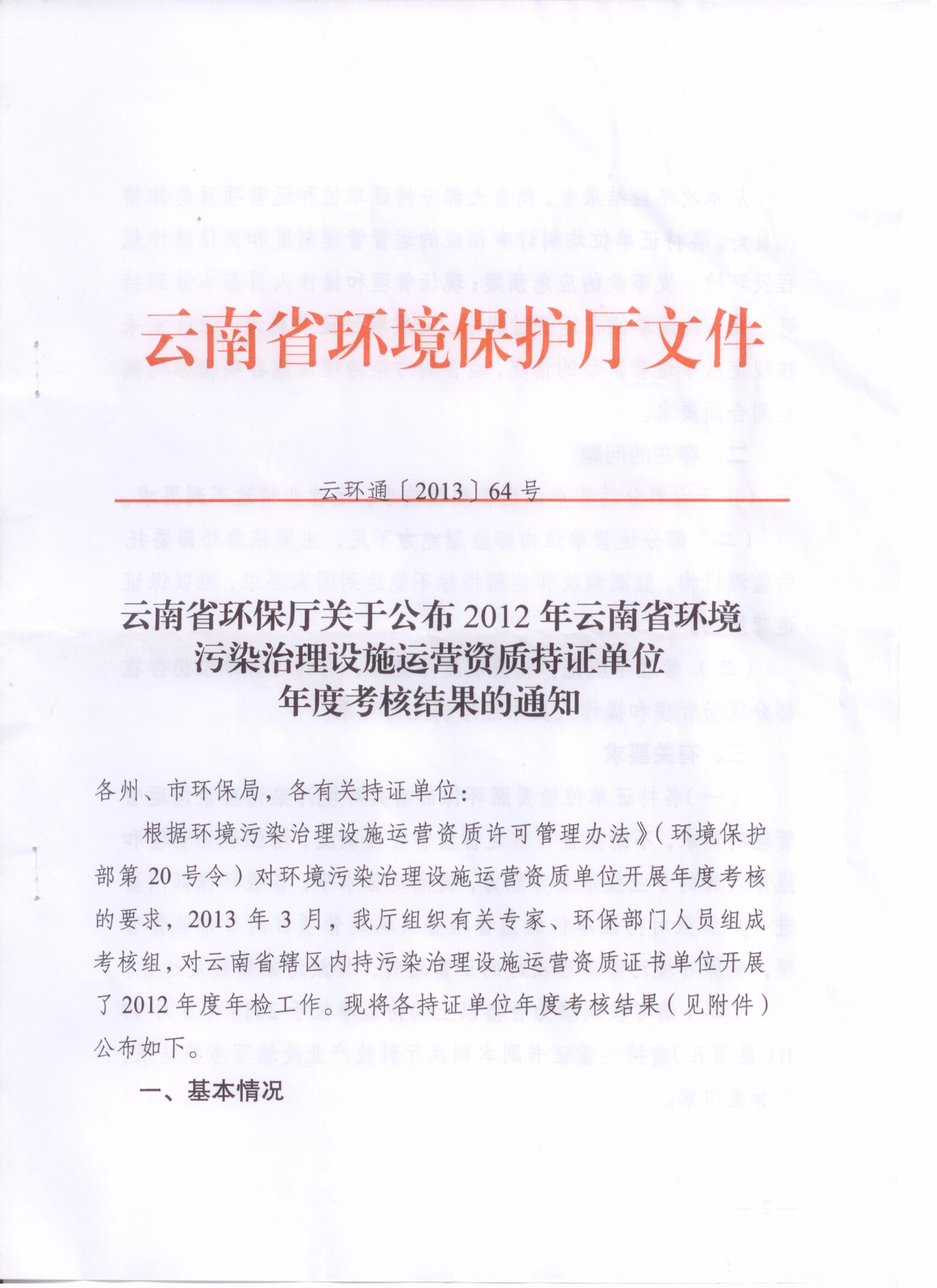 云環(huán)通【2013】64號——2012年度運(yùn)營資質(zhì)持證單位考核結(jié)果